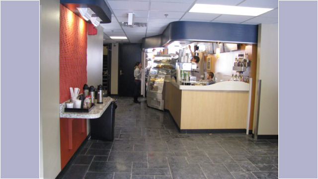 The coffee shop is operated by an outside vendor, requiring the design to meet the needs of the vendor, the University, and the State Health department. Pelsue Architecture worked with all of these entities to achieve this successful result.