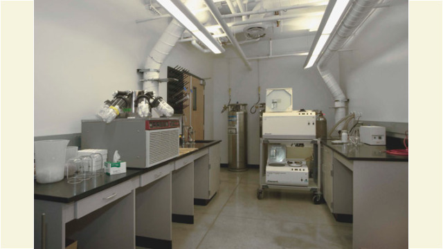 The interior of the building includes research space for 6 principal investigators and one scientific resource providing peptide synthesis, DNA analysis and other functions to University clients.